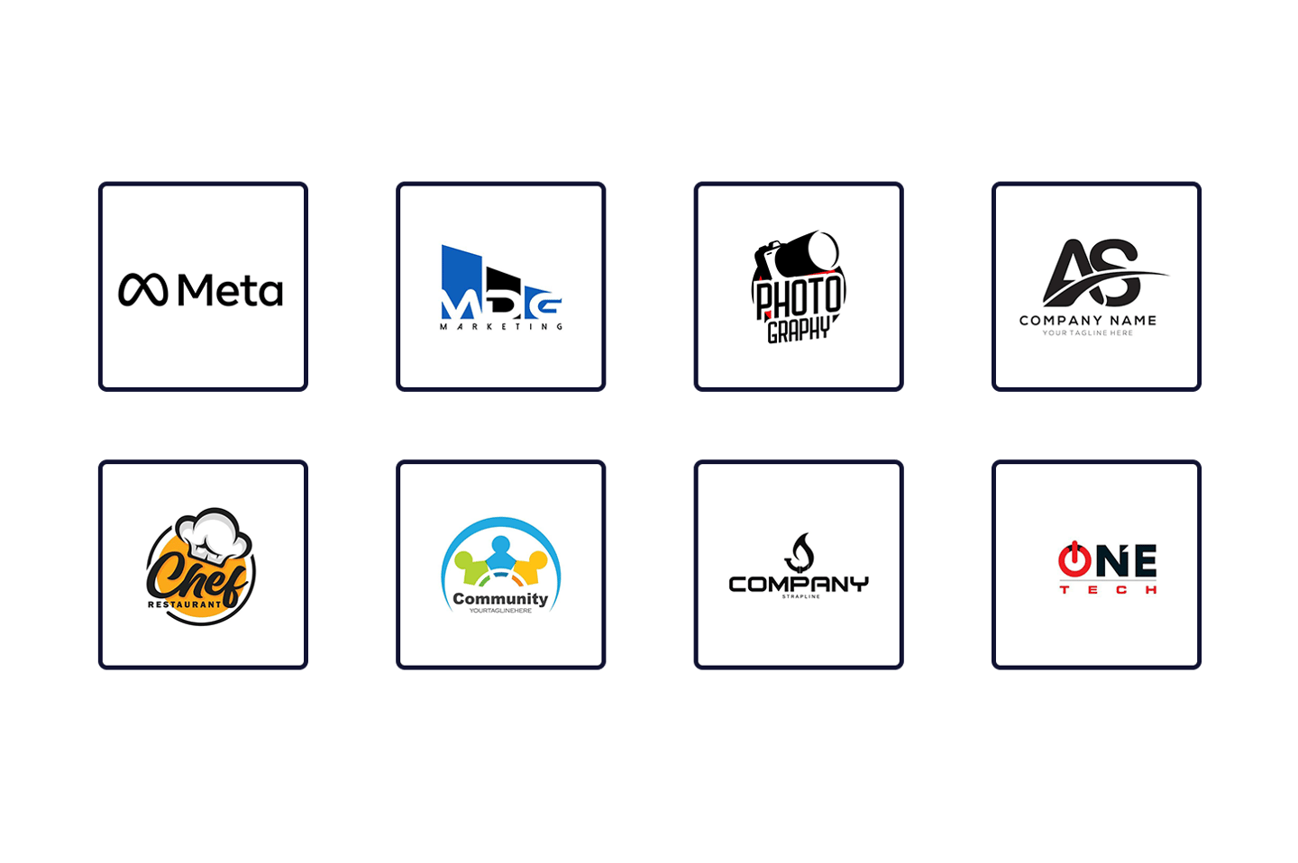 Les visuels présentés illustrent simplement les styles et univers de logos que nous concevons.